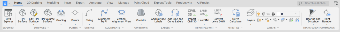 土木探索者面板是土木设计的核心面板。在工作区中,点击主页标签下功能区的民用资源管理器图标,显示或隐藏面板。