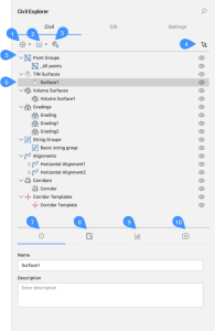 Civil Explorer 是管理和访问实体的主要面板。实体以树状视图排列,并按实体类型分组。