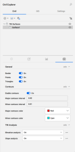 此外,通过 ATTACHCIVILOBJECT 命令附着到图纸上的 TIN 曲面也被列出。