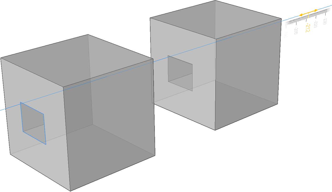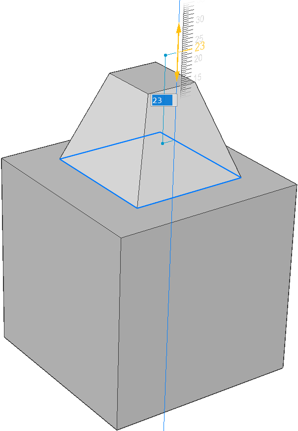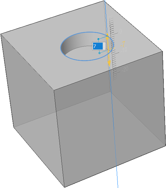 - 当您突出显示一个图元并将其向内拉伸时,将从主实体中减去一个体积块。