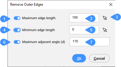 去除TIN曲面外边界上的三角形,这些三角形具有: