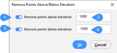 移除指定高程以下或高于高度的TIN点,并显示已移除的点数。