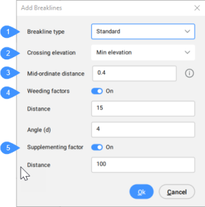 注意:如果断点线上顶点之间的距离大于指定的补充距离,则会向断点线添加额外的顶点。