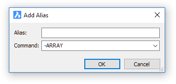 您可以开始在“命令”字段中键入命令名称,以在列表中轻松找到该命令。 - 在别名字段中输入命令的命令别名。