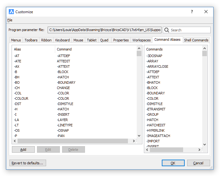 命令别名保存在* .pgp文件(P roG ram P arameters文件)中。默认情况下,使用可漫游根文件夹的Support文件夹中的default.pgp文件。