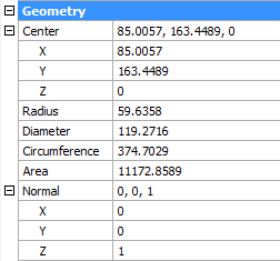 圆的属性显示在“属性”栏中。 - 在“中心点”,“半径”,“直径”,“周长”或“面积”字段中键入一个新值,然后按Enter键。