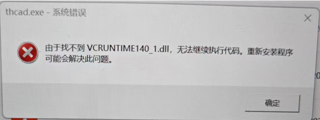 启动THCAD,提示:由于找不到 VCRUNTIME140_1.dll,无法继续执行代码。重新安装程序可能会解决此问题。