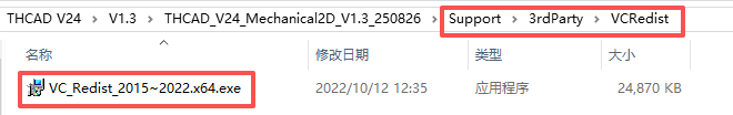 2、重新安装THCAD V24,或直接安装:x:\…\Support\3rdParty\VCRedist\VC_Redist_2015~2022.x64.exe