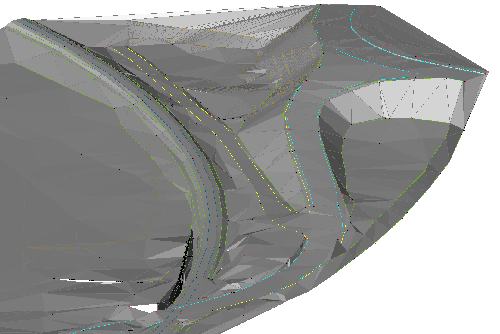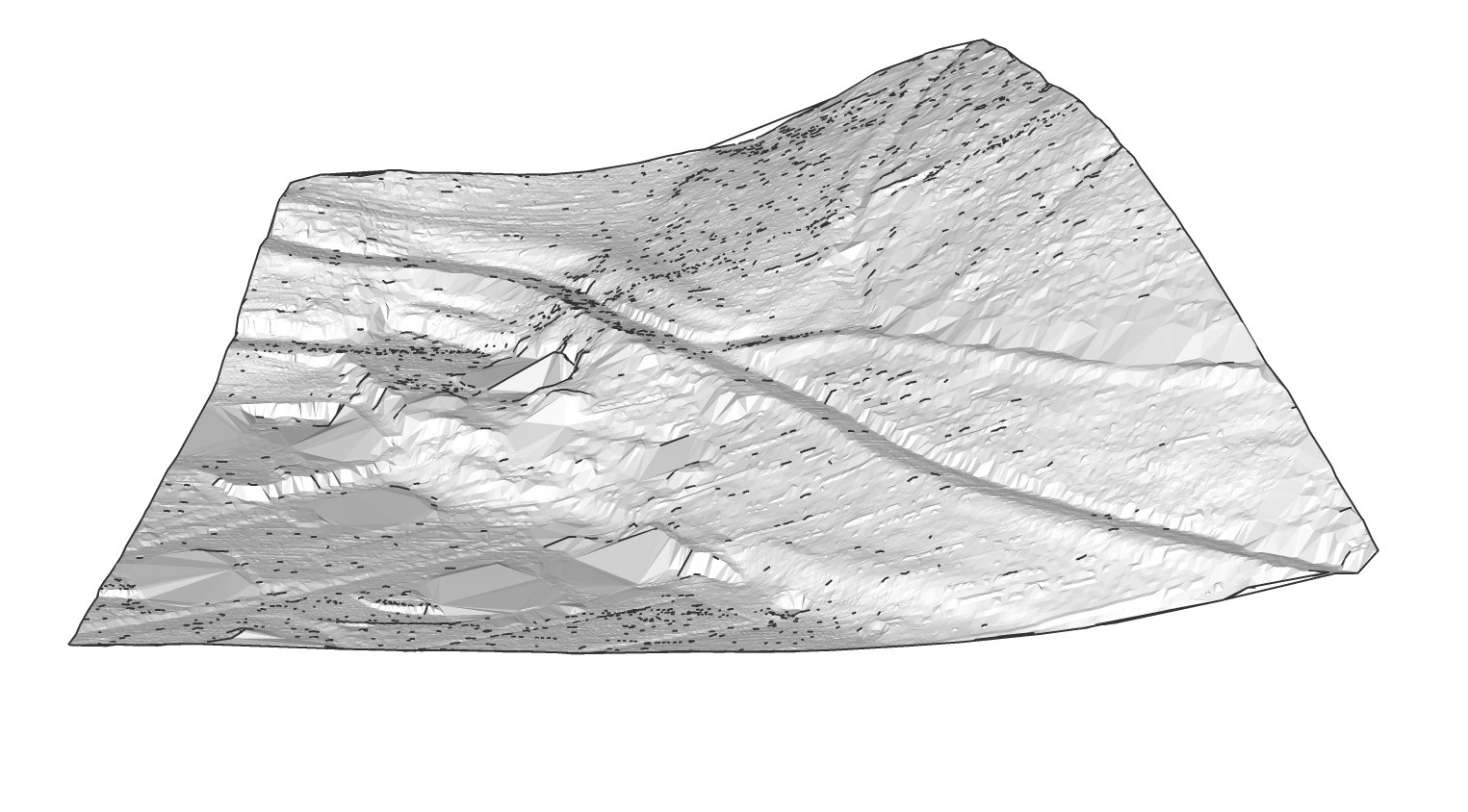 图像显示了从具有 87350 个点的点云创建的原始 TIN 表面。