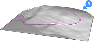 注意:将特征线添加到曲面之前的挡土墙划线 (7)。
