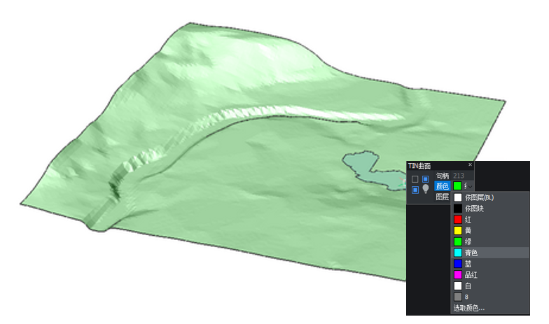 - 现在,您已在TIN曲面上创建了一个新元素。您可以根据需要更改其属性。例如:更改元素的颜色。