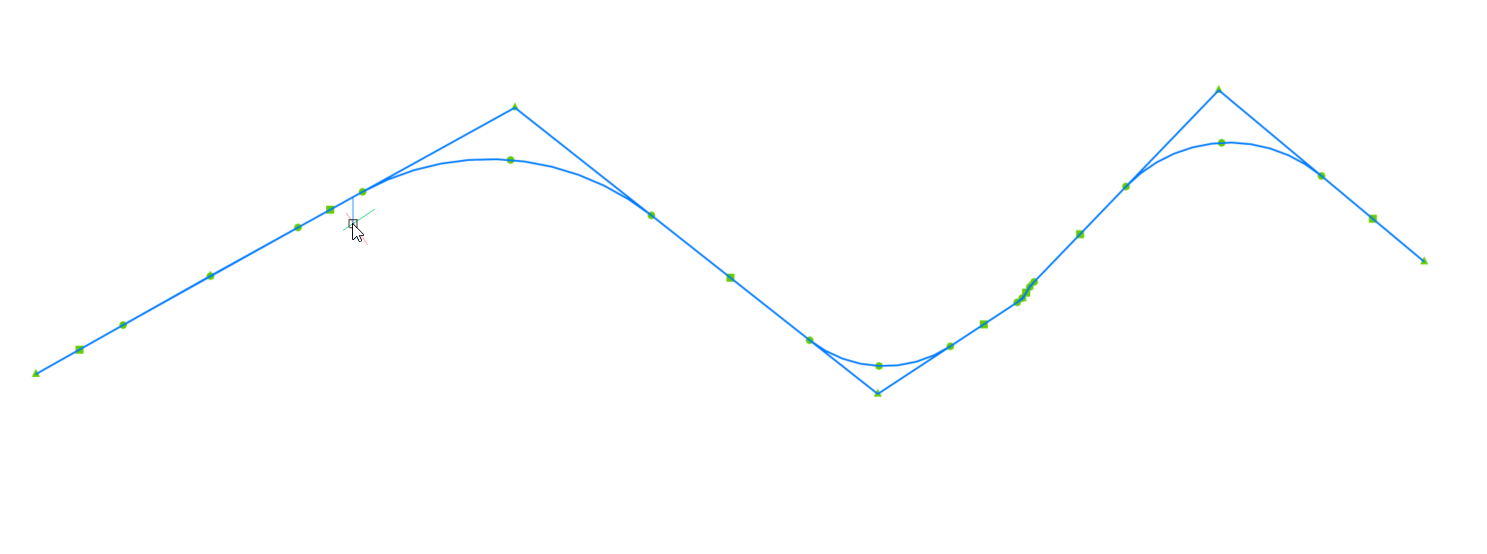 注意:显示了两个垂直对齐方式。浅蓝色表示从TIN表面开始的地形线,另一种是设计垂直对齐方式。设计垂直对齐具有直线渐变和垂直曲线,并会根据精度因子自动创建。您可以将精度系数从1更改为100。选择1时,精度将是最低的。