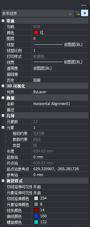 水平对齐是在水平方向上精确定位线性对象所需的2D曲线。它由交叉点(PI)定义。水平对齐是TIN曲面上的水平轨迹,用于生成高度轮廓和垂直对齐。单个水平路线可以具有多个垂直路线。水平对齐将出现在表面下方。