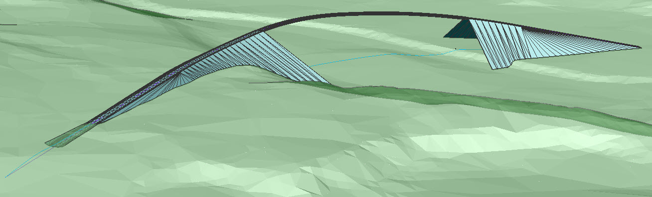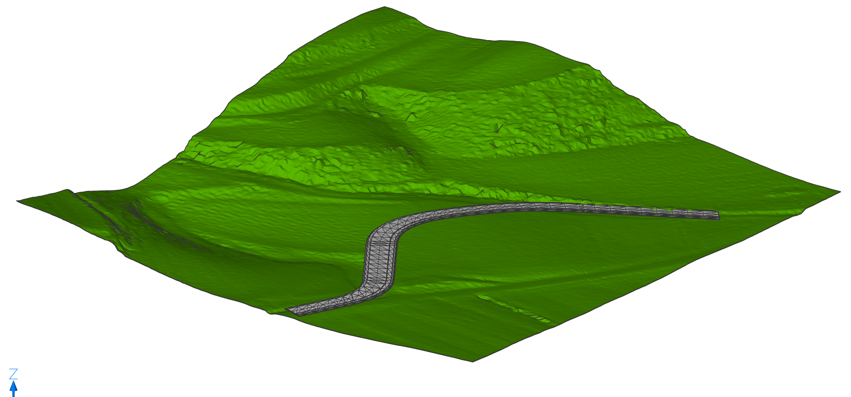 - 打开包含TIN表面(1),3D路线(2)和走廊模板(3)的工程图文件。