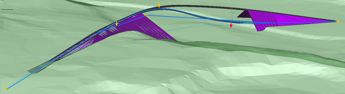 选择道路作为参考的3D路线,并移动夹点以水平编辑道路。