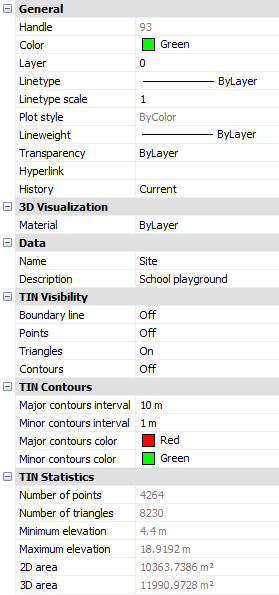 注意:如果TIN表面未显示图像,请将“视觉样式”更改为“ Realistic”或“ BIM”,并将“ TIN Surface”的三角形设置为ON。