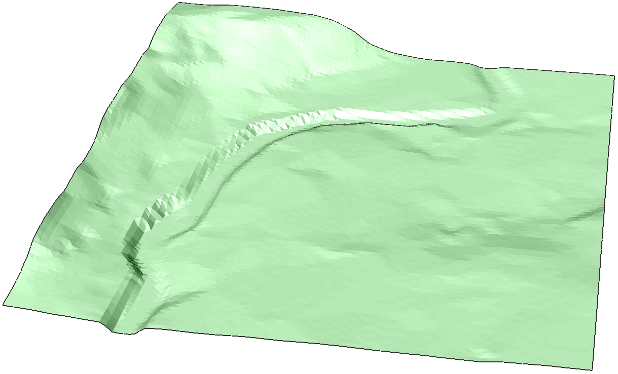 可以通过使表面变形或平滑化来修改TIN表面。通过使表面变形,可根据用户定义的区域轮廓调整TIN表面。通过对表面进行平滑处理,可以对选定区域进行平整,这是通过对该预定义区域进行插值来完成的。