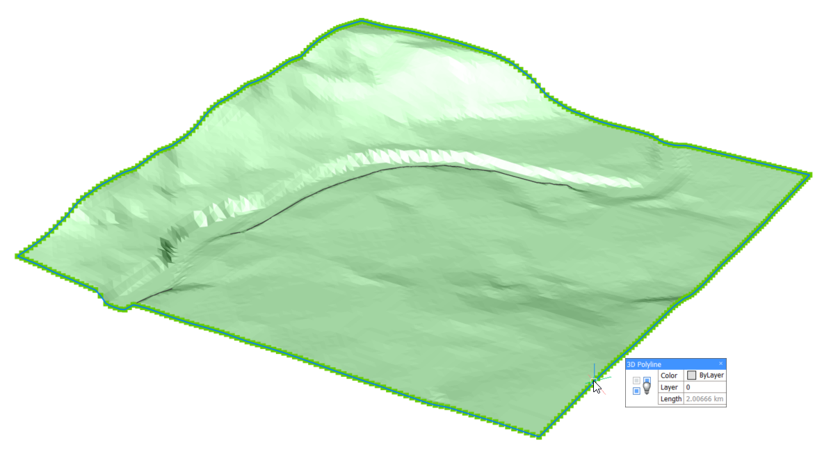 7. 现在,您已在TIN曲面上创建了一个新元素。您可以根据需要更改其属性。例如:更改元素的颜色。