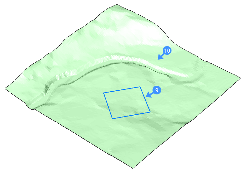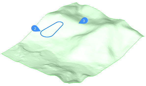 - 打开包含TIN曲面和表示建筑地坪的放坡的图形。