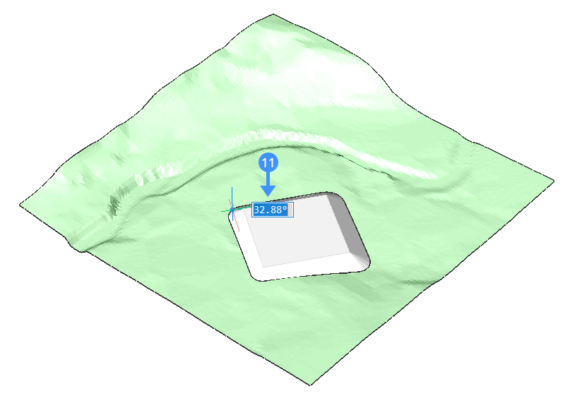 - 坡度到曲面需要输入图元(例如,多段线、线、弧、圆)、曲面和坡度来调平曲面。
