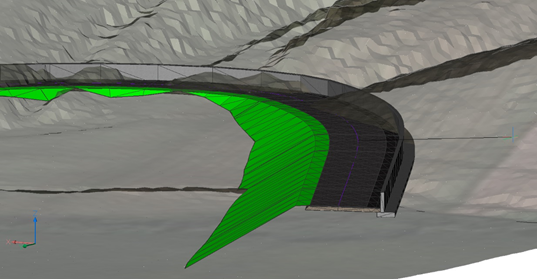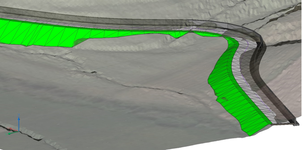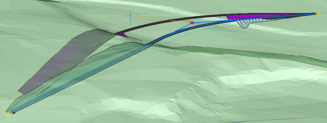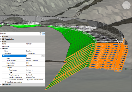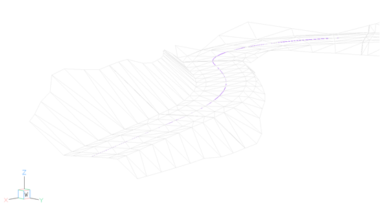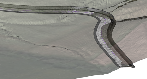 - 打开包含TIN曲面、三维对齐、模板元素和廊道模型的图形文件。