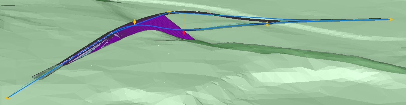 2. 选择廊道作为参考的三维对齐,然后移动夹点以水平编辑廊道。