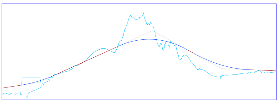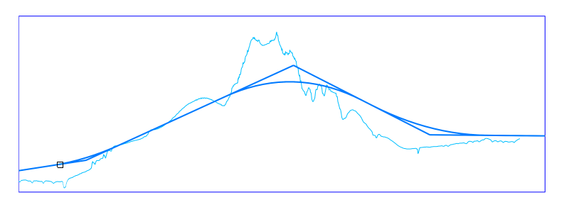 在垂直对齐视图中,您可以看到一条表示放坡对象的附加浅蓝色线。