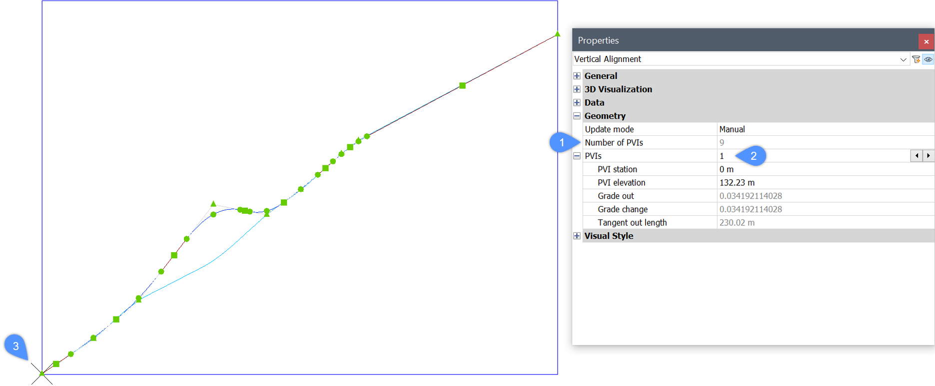 - 单击 PVI 字段 (2) 后,当前选定的 PVI 将在绘图 (3) 中突出显示。