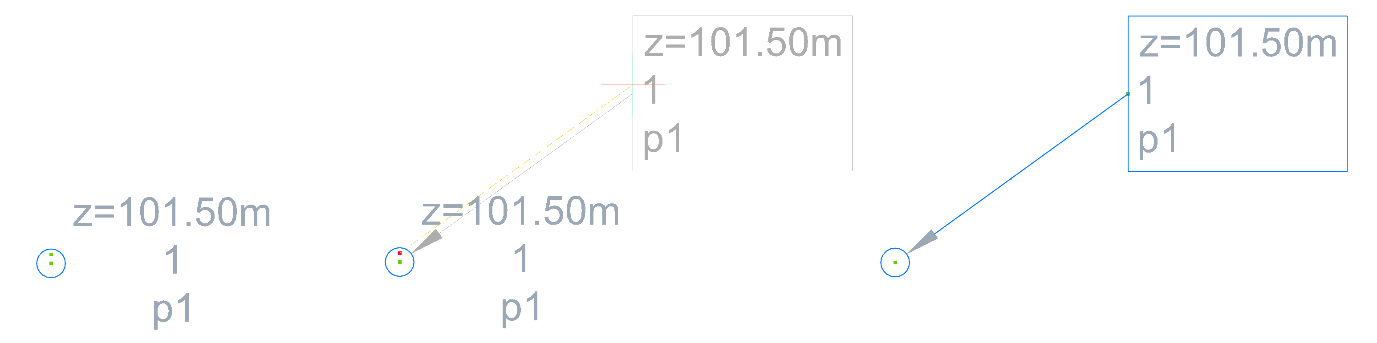 土木点包含两个夹点。主夹点放置在插入点处,而备用夹点垂直放置在插入点上方,并且始终附着到标注样式。您可以使用替代夹点将点标签拖离插入点并创建引线。