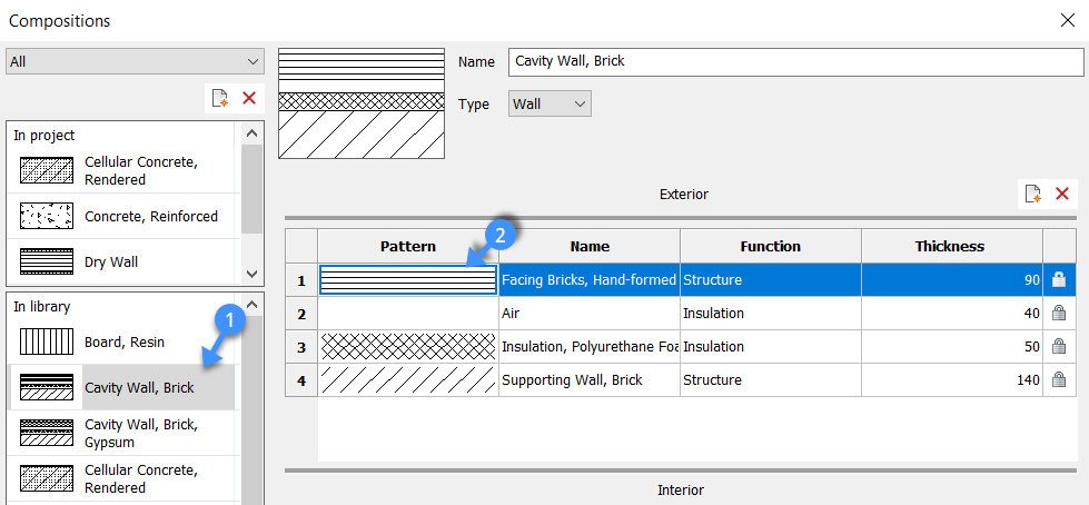 - 单击组成,然后双击组成的图案以打开“物理材料”对话框(2)。