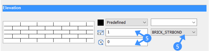 - 要配置纹理或实心填充,请转到外观选项卡页面(3)。高程剖面线默认设置为“无”。单击高程填充类型按钮,然后选择填充类型:无,实体,线性,预定义或自定义(4)。