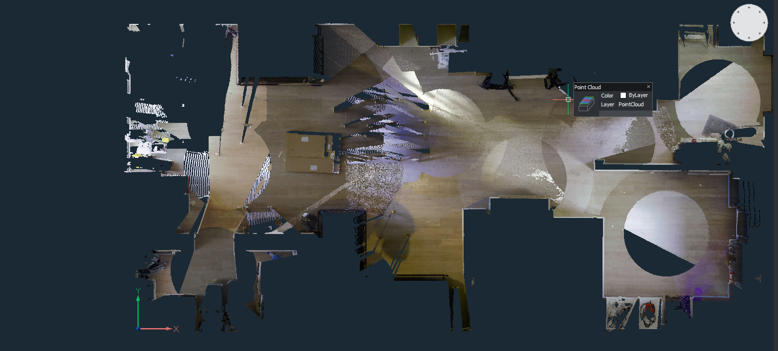 新的 POINTCLOUDALIGN 命令会自动旋转点云以使其与 X 轴和 Y 轴最佳对齐,同时考虑点云中的垂直平面面(如墙体)。为了确定最佳对齐方式,你需要指定包含墙体的点云中最相关的区域。
