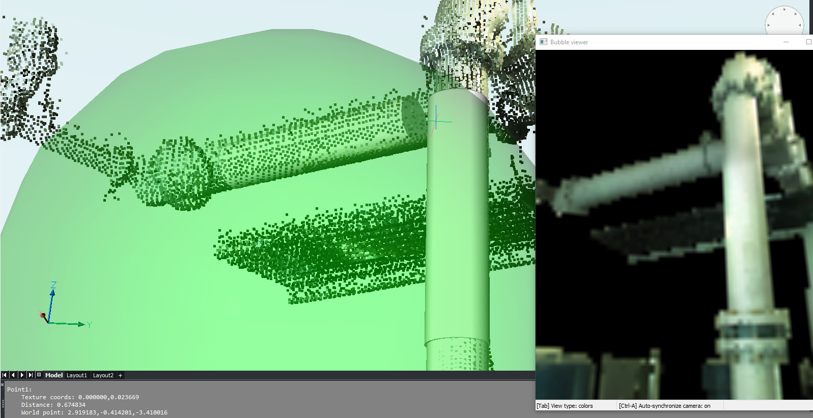 通过在气泡查看器中使用 POINTCLOUDFITCYLINDER 命令,您可以将圆柱体拟合到点云的圆柱形部分(例如管道)。需要在气泡查看器中沿圆柱轴单击两次才能提取圆柱体(在模型视图中创建实体)。